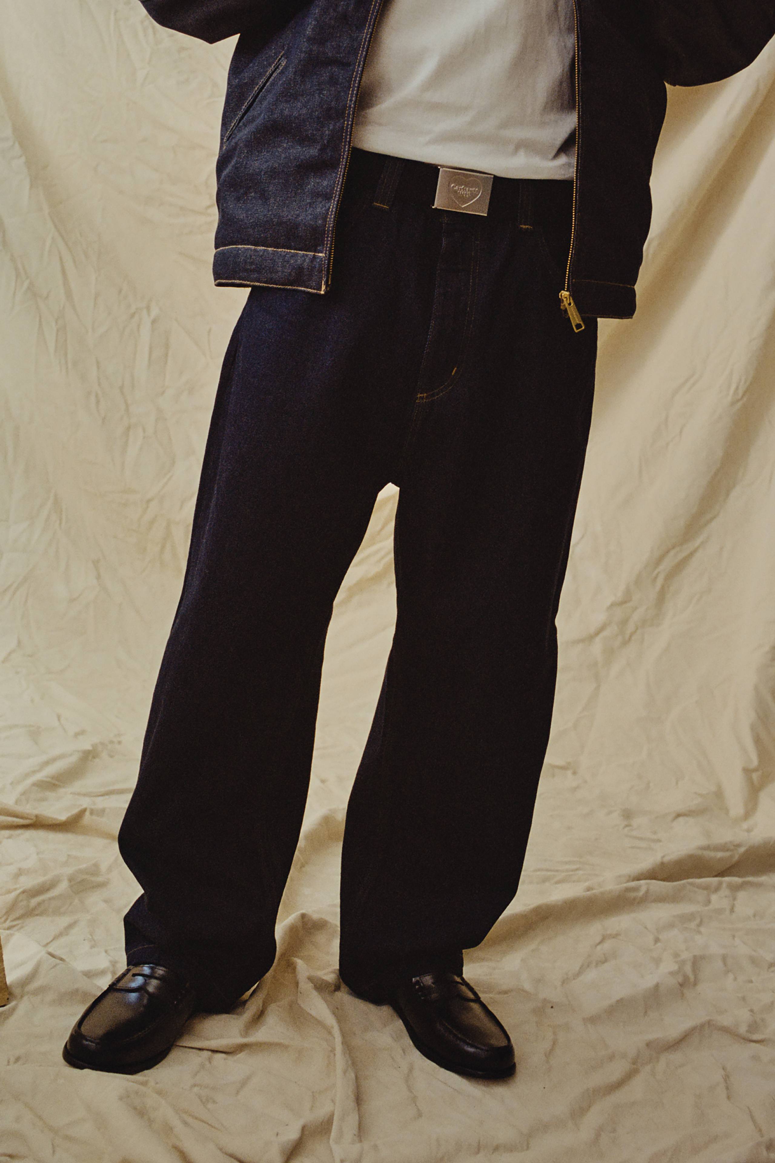 Additionally, the Landon Pant is cut to a wide fit through the leg, seat, and thigh, and tapers towards the ankle. It has a similar silhouette to the Brandon Pant, yet features a more regular rise waist.